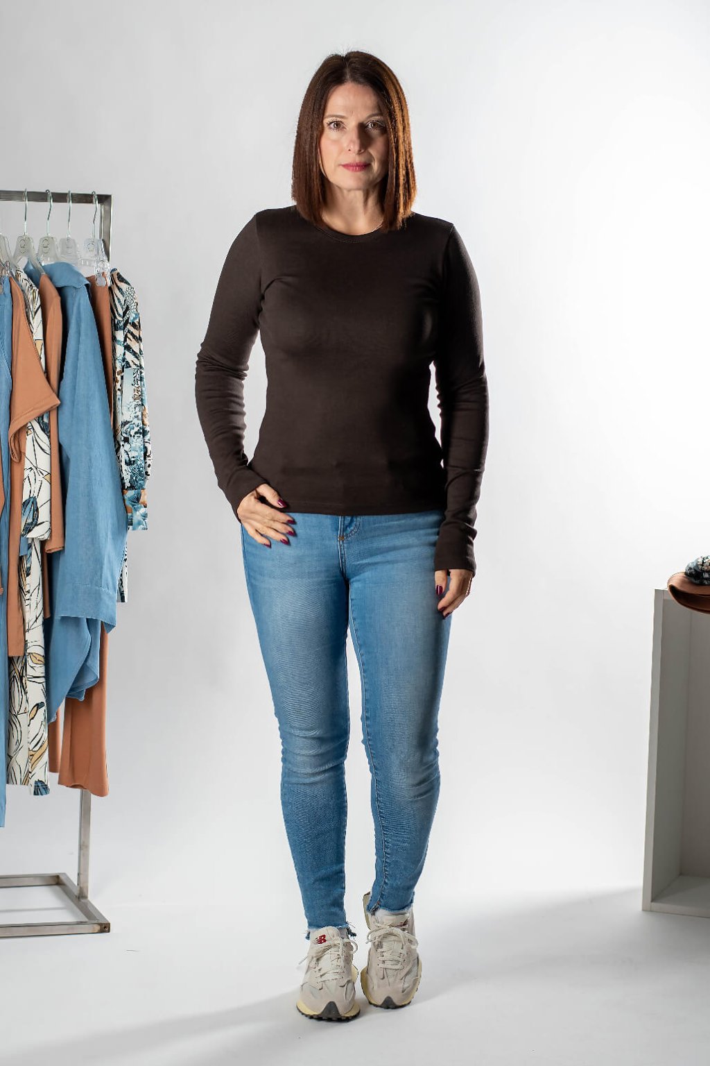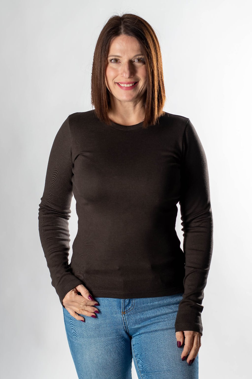 Triko z úpletu s dlouhým rukávem TAMA tmavě hnědá