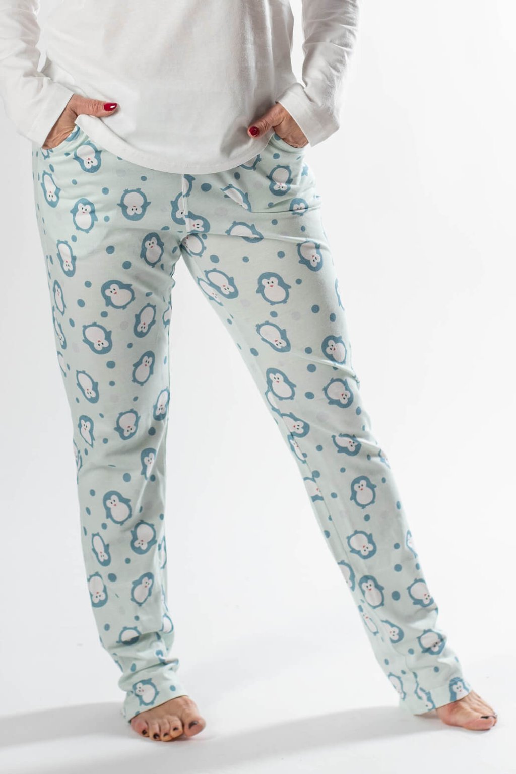 Objevte naše dámské pyžamo MIYA s dlouhým rukávem - kousek, který spojuje komfort a jemnou eleganci. Toto pohodlné pyžamo v atraktivní barevné kombinaci bílé, mintové a šedé je ideální pro každodenní relax. Komplet se skládá ze bílého trička s dlouhým rukávem, které je zdobeno veselým potiskem, a dlouhých kalhot s potiskem. Kalhoty mají volný střih a elastický pas pro dokonalé padnutí. Prioritou je maximální komfort a kvalita. Celé dámské pyžamo je vyrobeno z 50% bavlny a 50% modalu, což zaručuje prodyšnost, jemnost a šetrnost k pokožce. Pyžamo MIYA vám poskytne teplo a pohodlí pro klidný spánek i relaxaci v domácím prostředí.