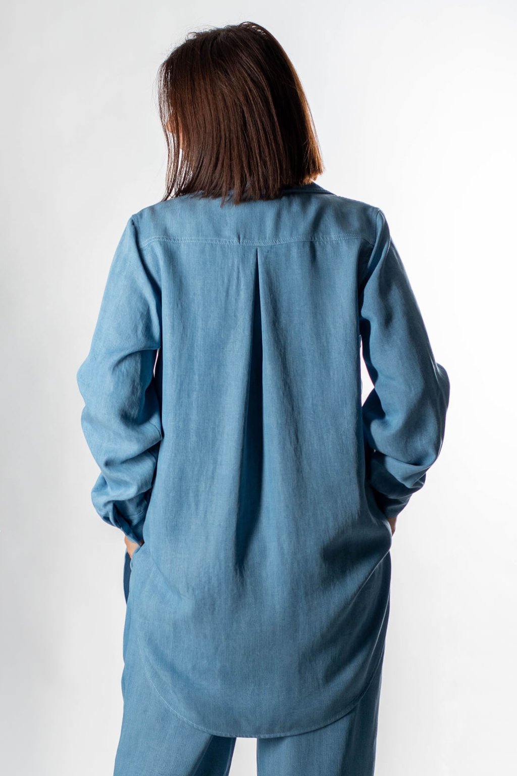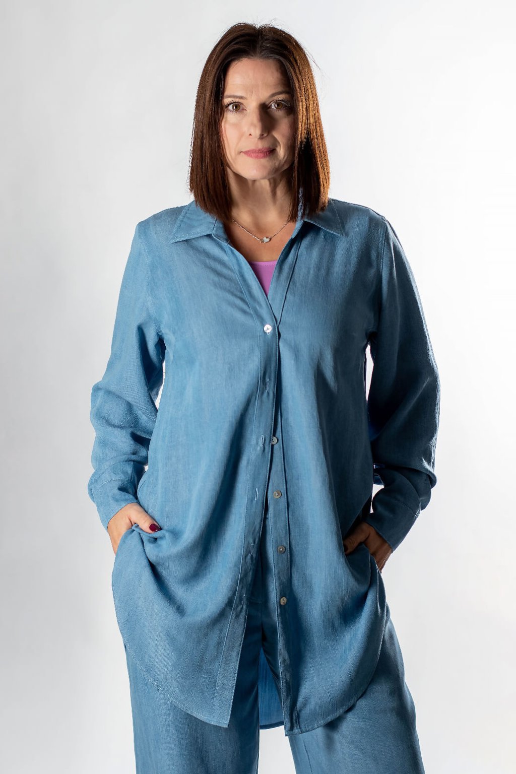 Tato košile je ztělesněním elegance a pohodlí, navržena pro moderní ženu, která si cení kvality a nadčasového designu. Košile je vyrobena ze 100 % TENCEL-U, což jí dodává výjimečnou jemnost, splývavost a prodyšnost. Je mimořádně příjemná na dotek a zajišťuje komfort. Má volnější, prodloužený střih, který lichotí postavě a zároveň poskytuje volnost pohybu. Vyznačuje se elegantní modrou barvou, která působí svěže a žensky. Košile disponuje límcem a zapínáním na knoflíky, má dlouhé rukávy. Je to perfektní kousek, který snadno zkombinujete s kalhotami. Ideální je do práce, na procházky městem, dovolenou nebo pro jakoukoli příležitost, kde chcete vypadat chic a cítit se pohodlně. Dopřejte si univerzální kousek, který obohatí váš šatník a zpříjemní dny!