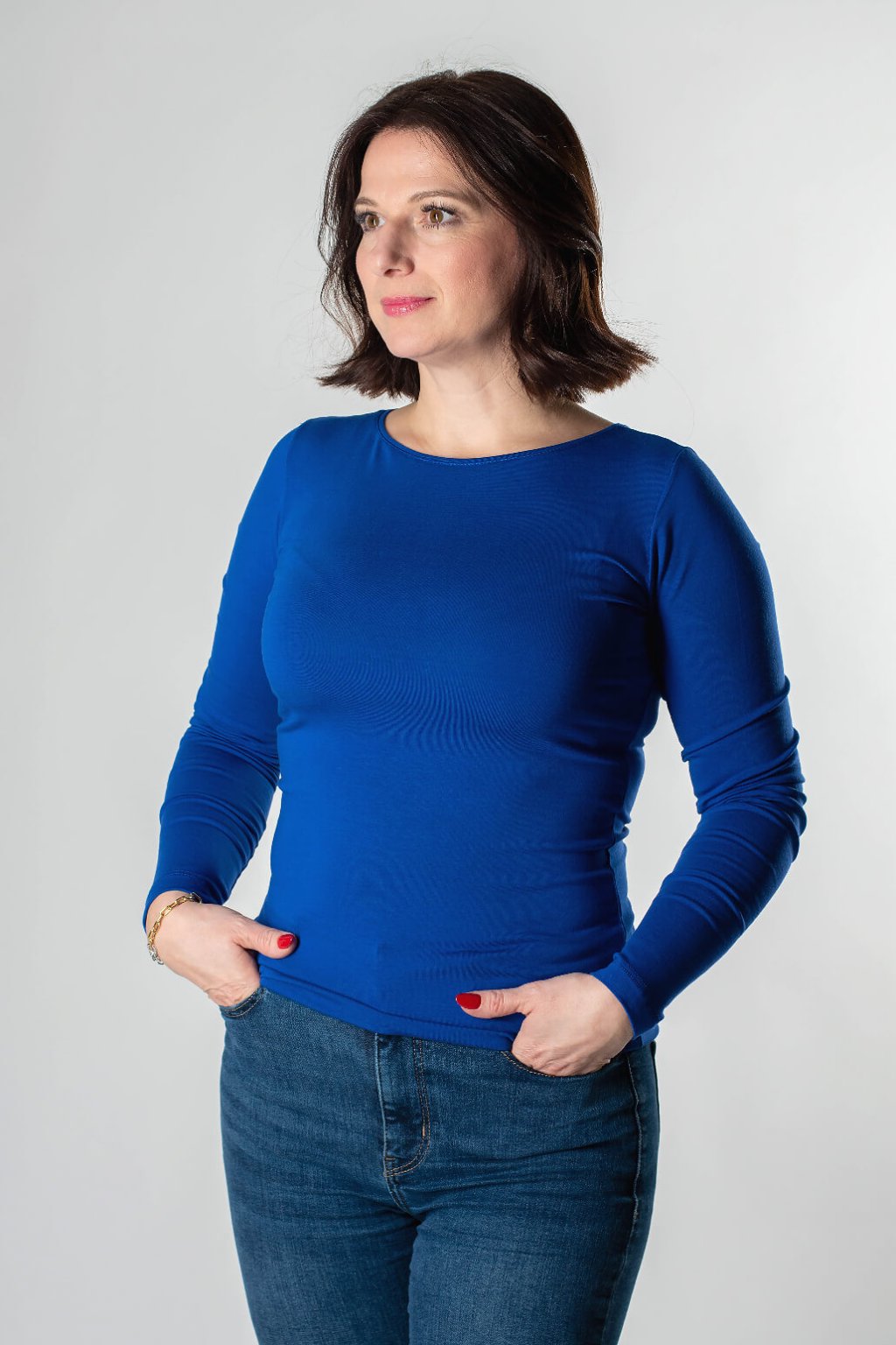 Elegantní jednoduché tričko v oblíbeném hladkém střihu s dlouhým rukávem ve kterém se budete cítit velmi pohodlně.Je vhodné pro každodenní příležitost. Hodí se ke sukni nebo ke kalhotám z naší nabídky.