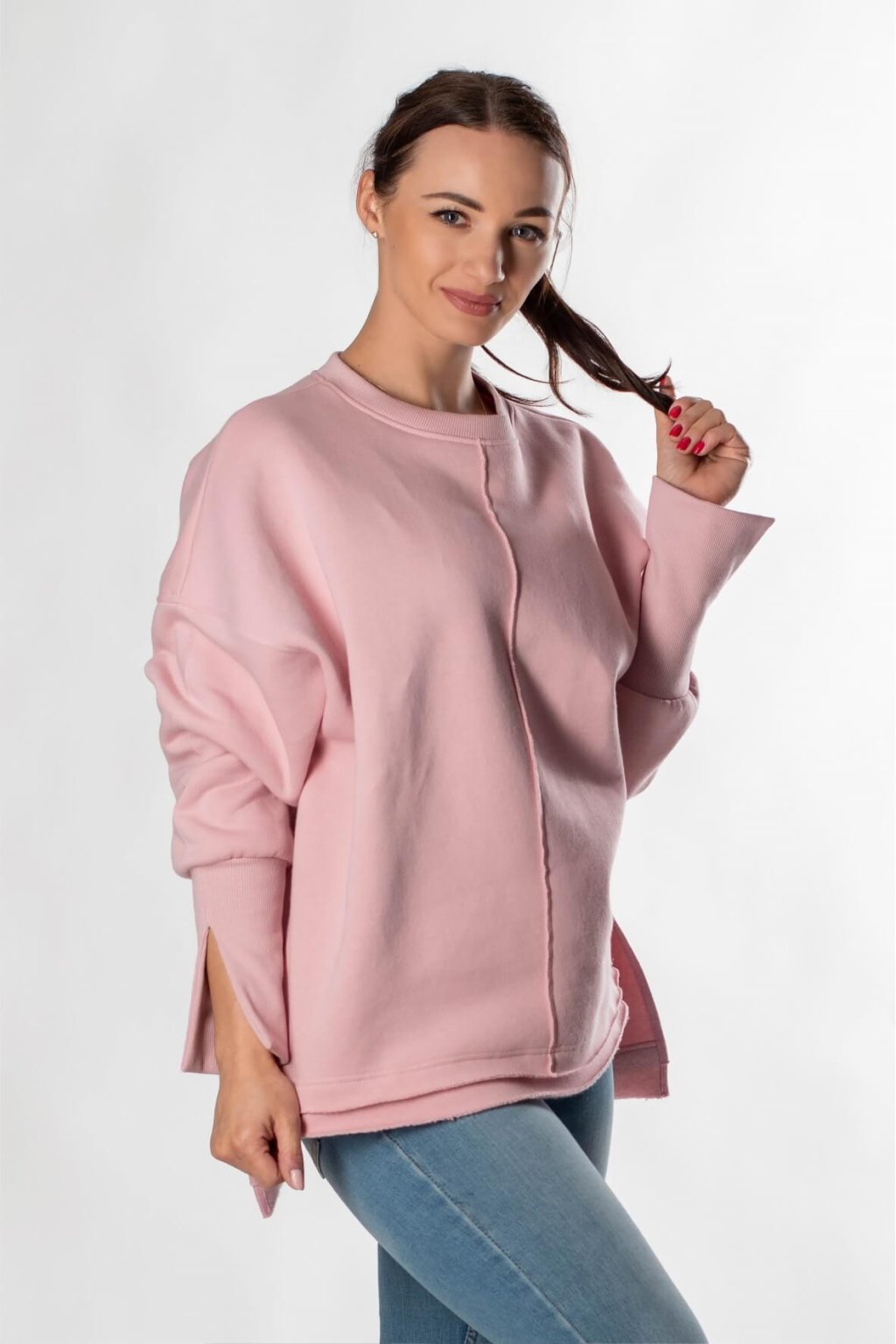 Mikina, ve které budeš in. Je dostatečně volná, lehká, příjemně měkká a samozřejmě trendy. Navíc má šmrncovní, rozstřižené manžety a prodloužený zadní díl. Kde ji využiješ je na tobě, ale zaručeně v ní budeš vypadat super.