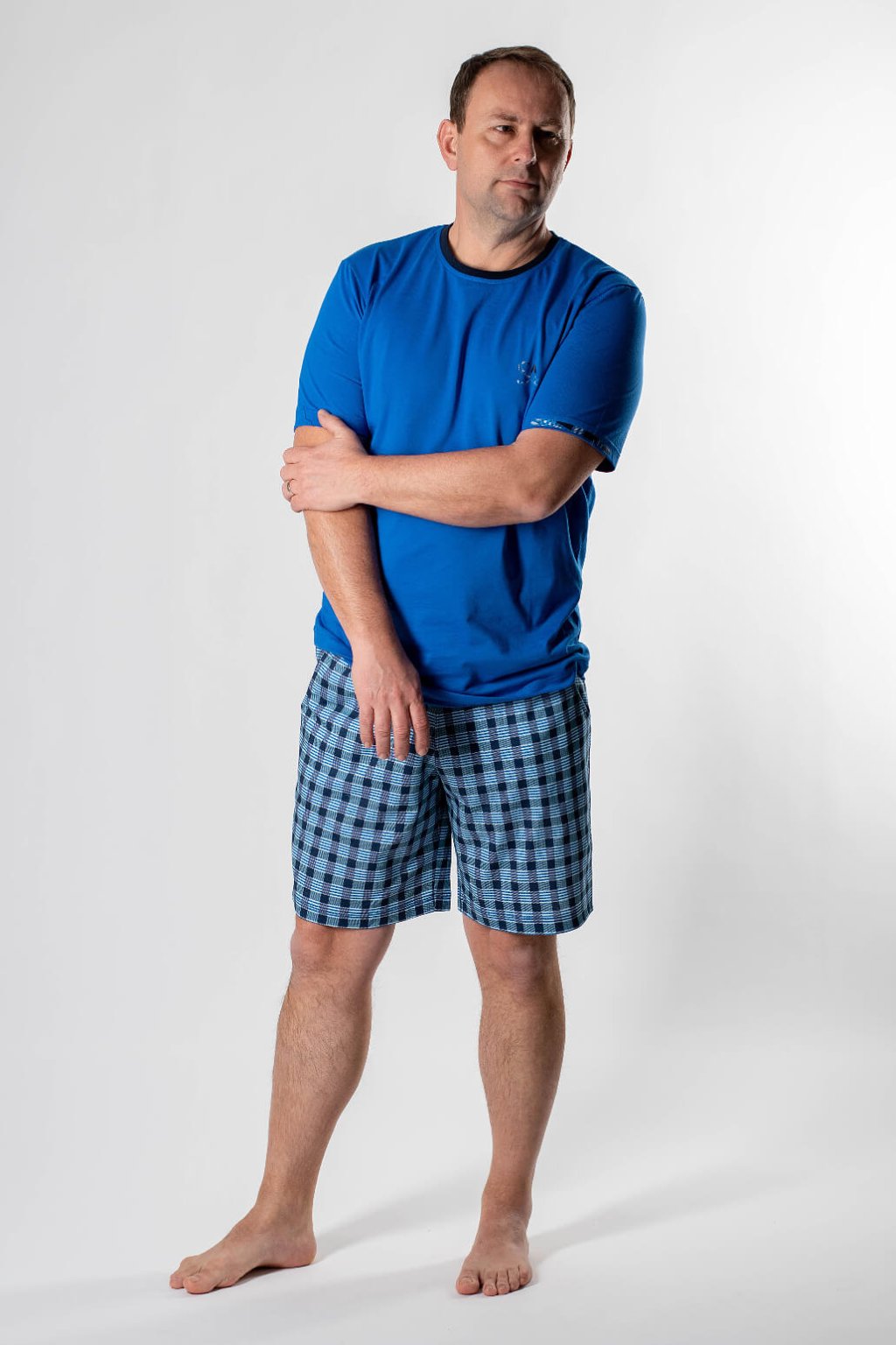 Kalhoty jsou s károvaným vzorem, volnějšího střihu, mají kapsy v pase gumu.