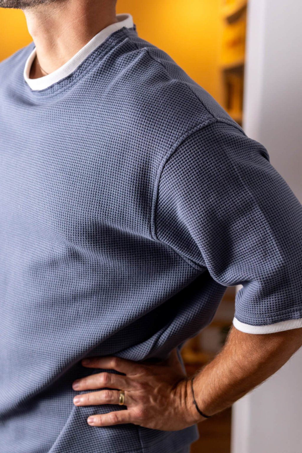 Povzneste svůj volnočasový outfit na novou úroveň s tričkem, které kombinuje tradiční pohodlí s netradičními detaily. Pánské triko GREK s krátkým rukávem je vyrobeno ze 100% bavlny, což zaručuje přirozený pocit na pokožce a vysokou prodyšnost. Charakteristickým znakem tohoto modelu je výrazná vaflová struktura úpletu, která tričku dodává moderní vizuální rozměr a jemně robustní charakter.