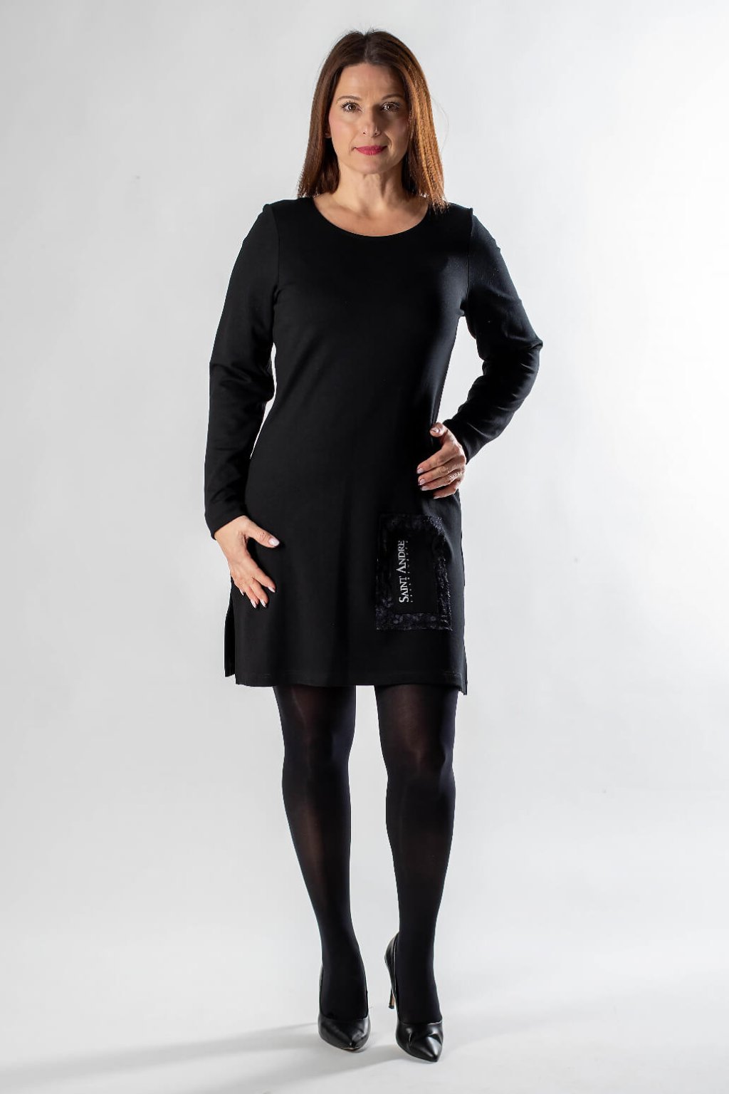 Objevte dámskou tuniku TUNA – nadčasový a maximálně pohodlný kousek do vašeho šatníku. Tato černá tunika s dlouhým rukávem a volnějším střihem je ideální pro každodenní nošení, ať už k legínám, nebo k džínám. Tunika má decentní kulatý výstřih a prodlouženou délku.Charakteristickým a stylovým detailem je dekorativní aplikace s nápisem umístěná na přední spodní části, která dodává jinak minimalistickému designu moderní punc. Díky dlouhému rukávu je tunika vhodná i pro chladnější dny.