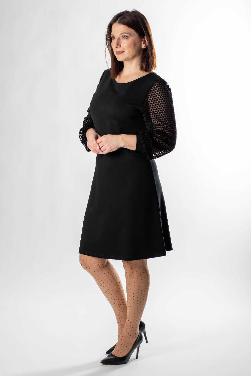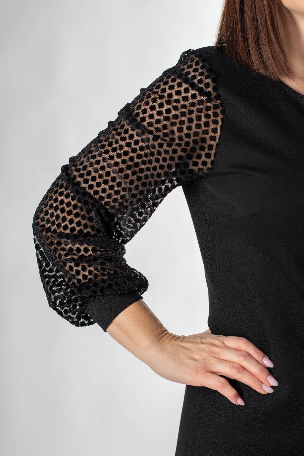Romantické malé společenské šaty nesmí chybět v žádném šatníku.Hledáte kousek, který vás provede od důležitého pracovního dne až po večerní koktejl? Tyto šaty kombinují minimalistický střih s dramatickým detailem, který jim dodává punc luxusu a originality. Nejvýraznějším prvkem jsou transparentní rukávy s 3D texturou, které vytvářejí hru světla a stínu a dodávají celému outfitu lehkost. Jejich podstatou je jednoduchý design bez zbytečných ozdob, nadčasový střih v délce maximálně pod kolena a hlavně kvalitní materiál, který vám vydrží velmi dlouho.