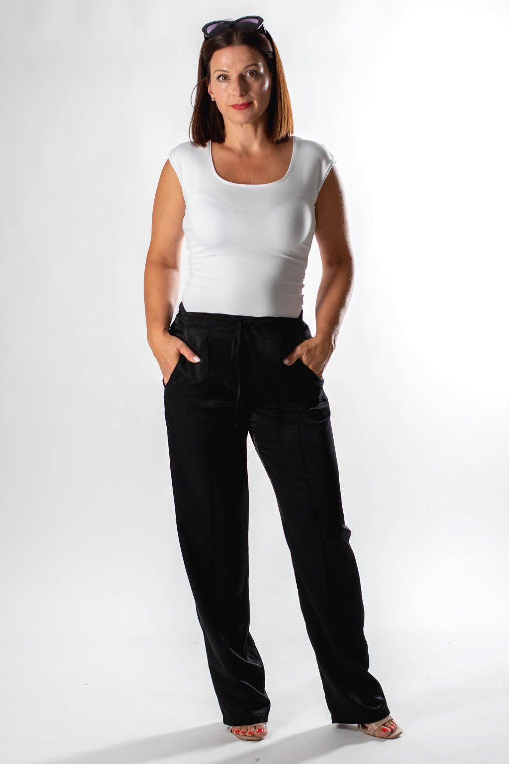 Zahalte se do lehkosti a luxusu s těmito úžasnými kalhotami! Jejich lesk okamžitě přitáhne pohledy a dodá vašemu outfitu sofistikovaný nádech. Díky složení z viskózy a polyesteru jsou nejen úžasně příjemné na dotek a prodyšné, ale také perfektně drží tvar a jsou jednoduché na údržbu. Praktické kapsy přidávají na funkčnosti a pohodlí. V pase mají pružnou gumičku a šňůrku na stažení, díky čemuž se dokonale přizpůsobí vaší postavě. Ať už se chystáte pro běžný den nebo speciální příležitost, tyto kalhoty jsou ideální volbou pro každou ženu, která hledá stylový, pohodlný a zároveň praktický kousek do svého šatníku. Nechte se okouzlit jejich splývavým střihem a užijte si pocit lehkosti a elegance s maximálním komfortem.