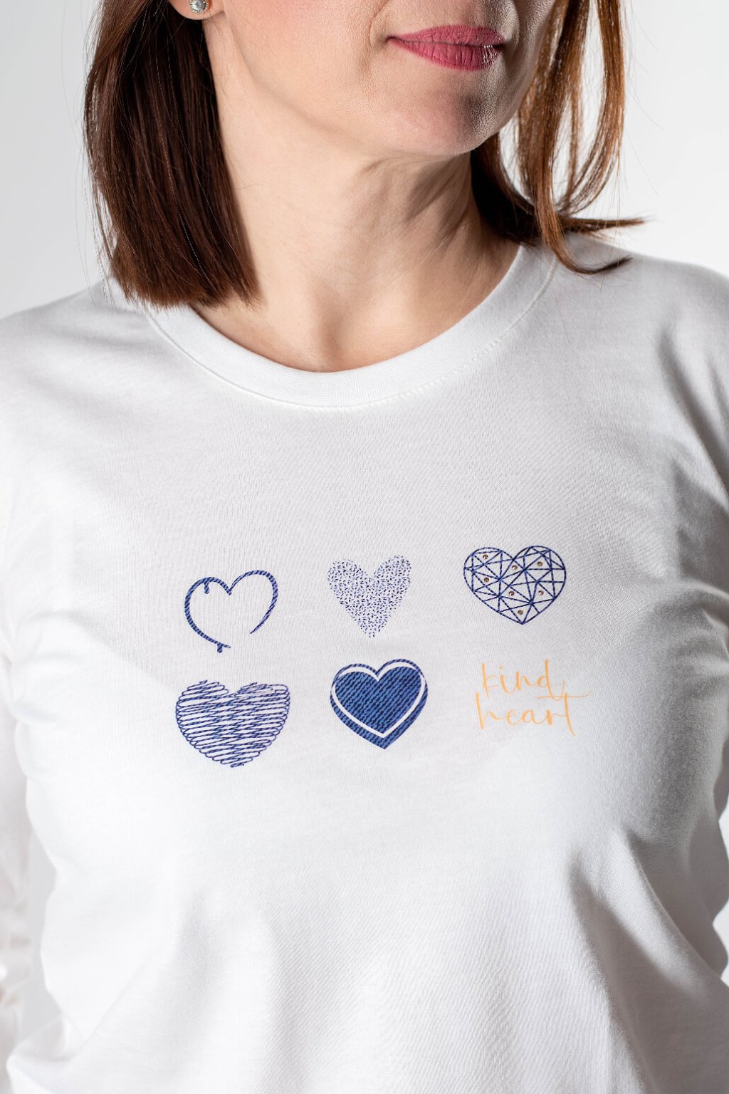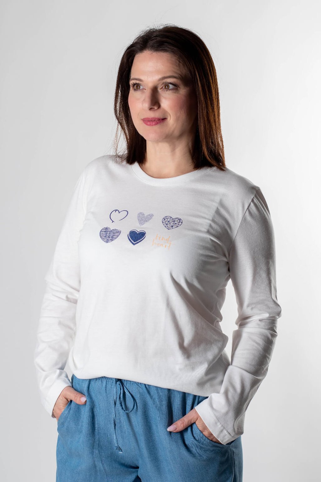 Dámské máslové tričko s dlouhými rukávy MIYA I potisk Srdce