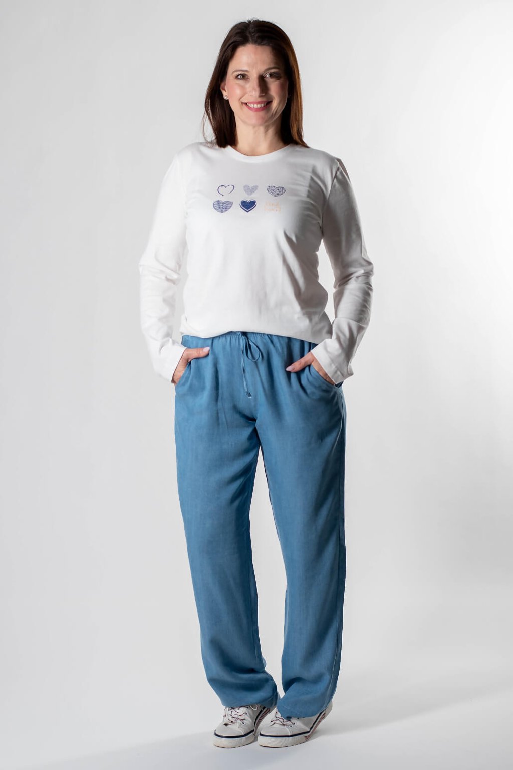 Dopřejte si pohodlí a styl s tímto dámským tričkem máslové barvy. Je vyrobeno ze 100% bavlny, díky čemuž je měkké na dotek a výborně prodyšné. Jednoduchý, ležérní střih s dlouhými rukávy a kulatým výstřihem zaručuje komfortní nošení po celý den. Triko zdobí jemný potisk srdíček.