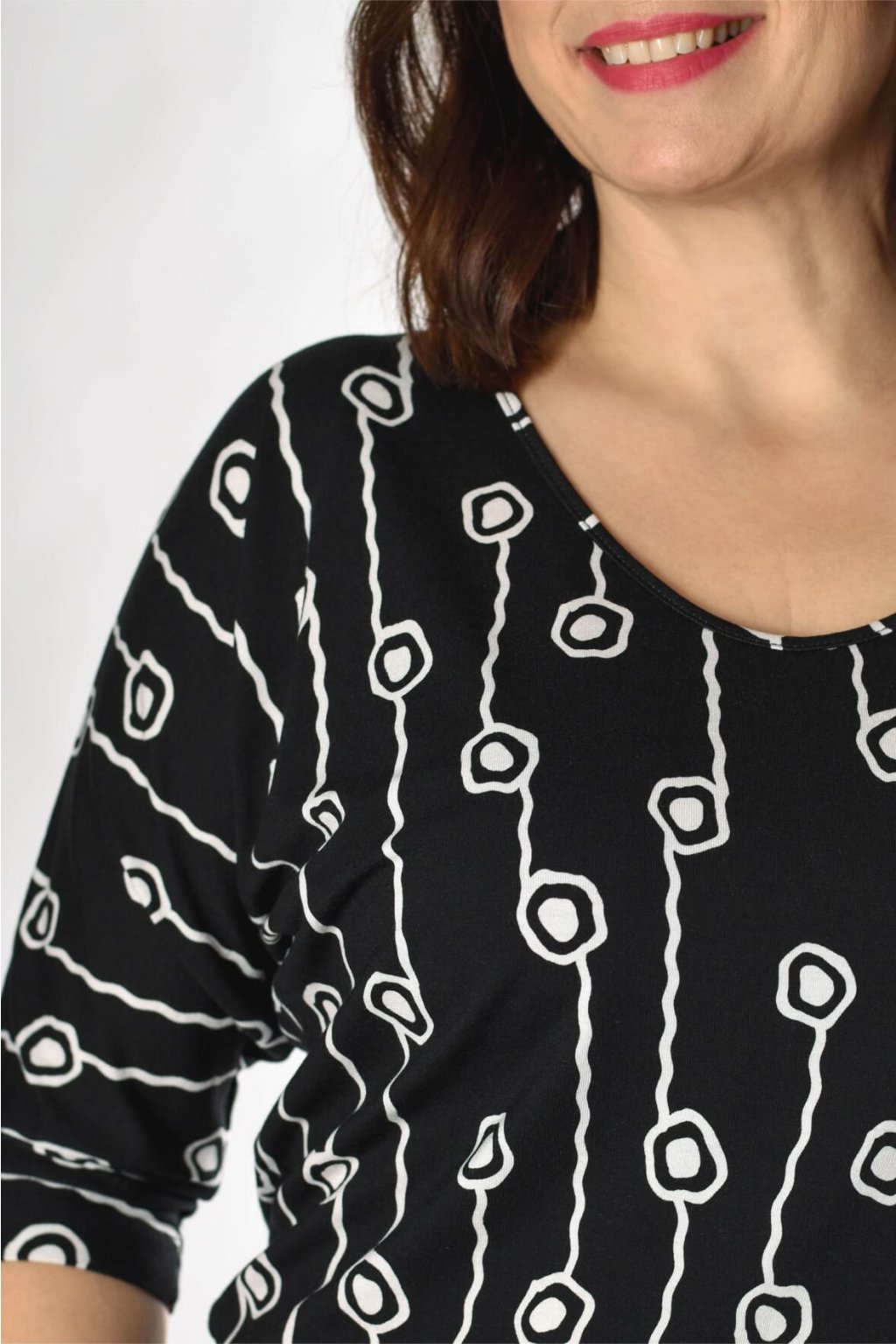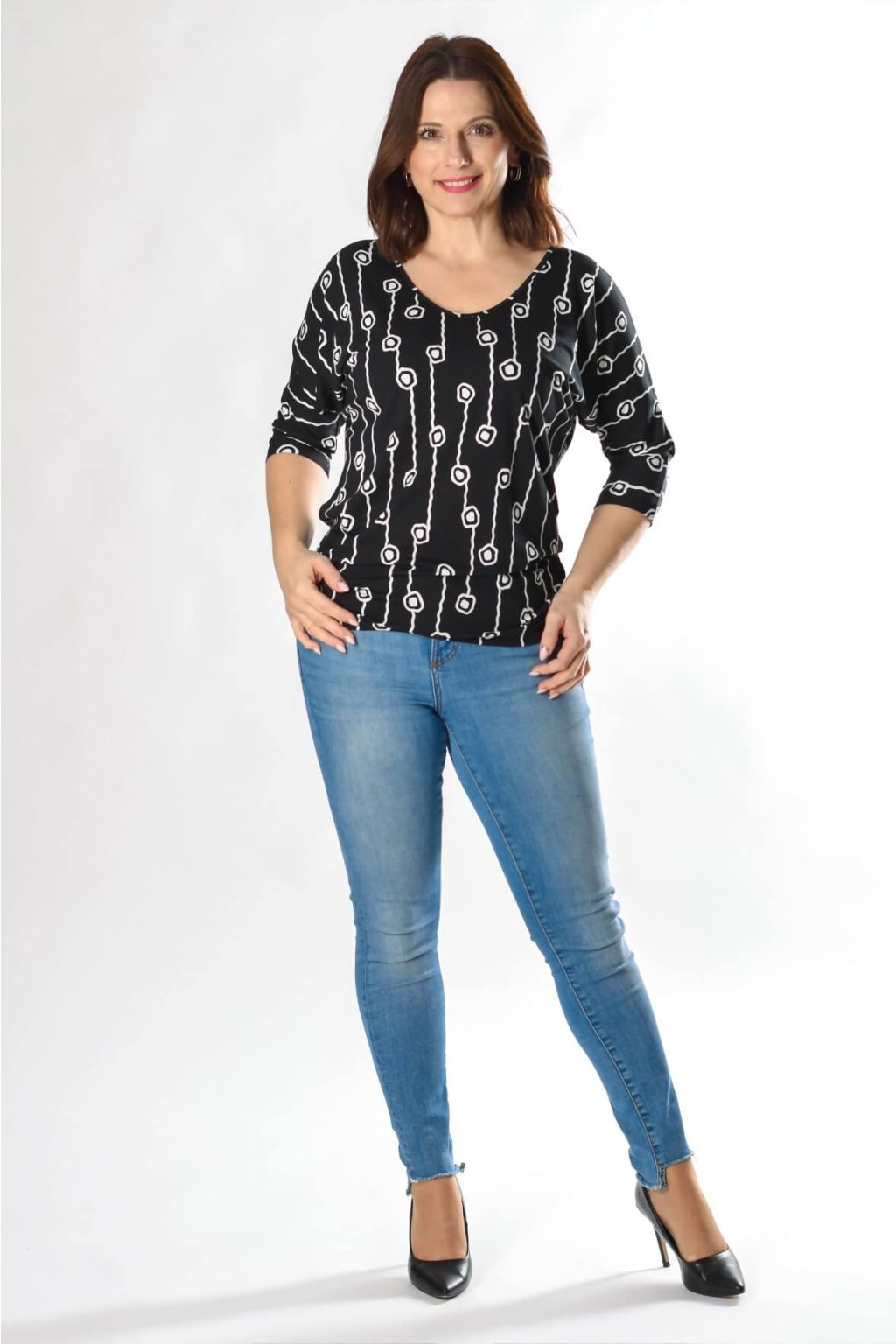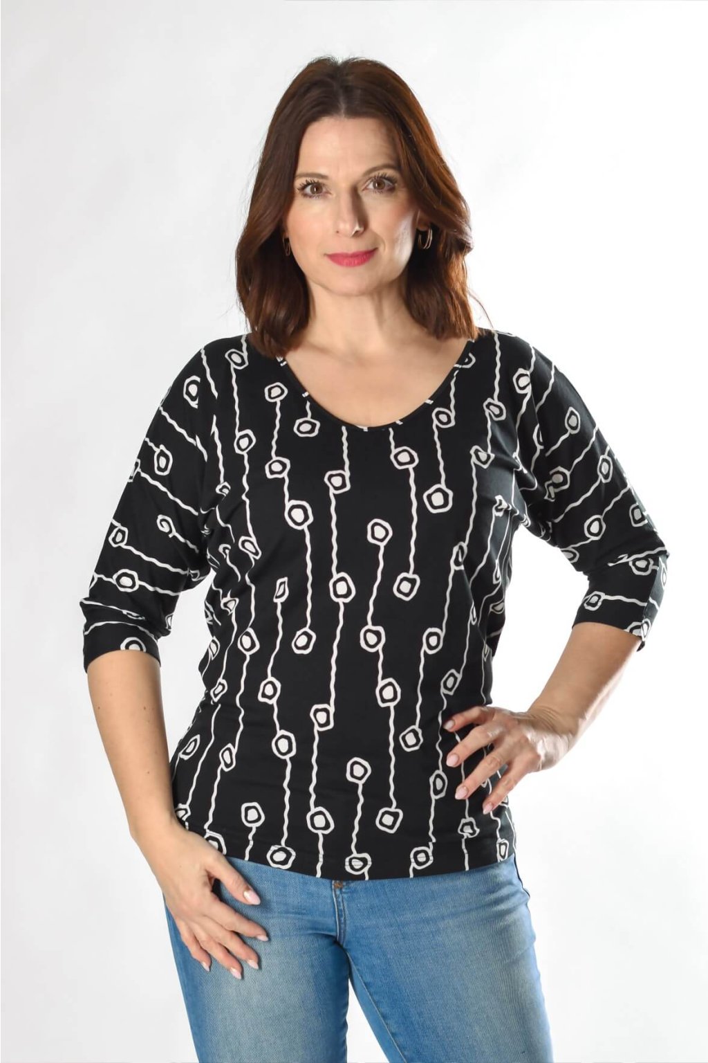 Dámské volnější tričko s tříčtvrtečním rukávem ve stylovém potisku.