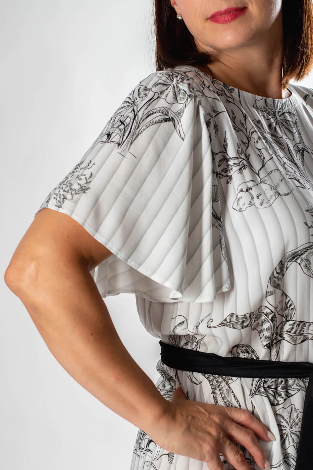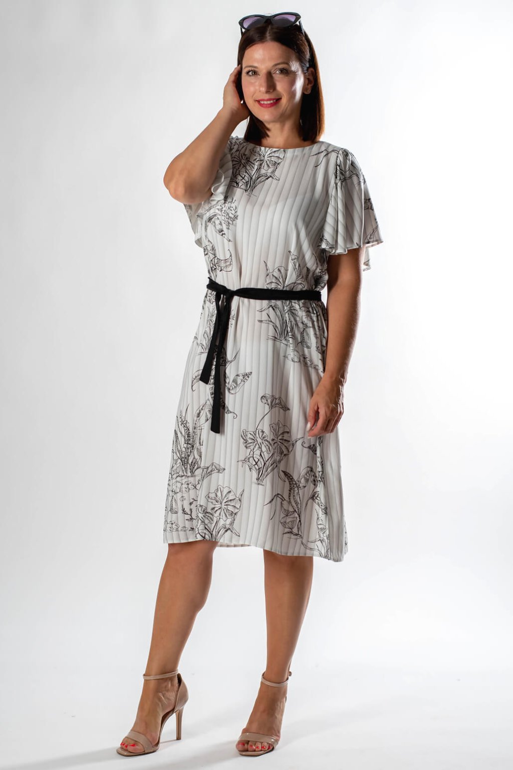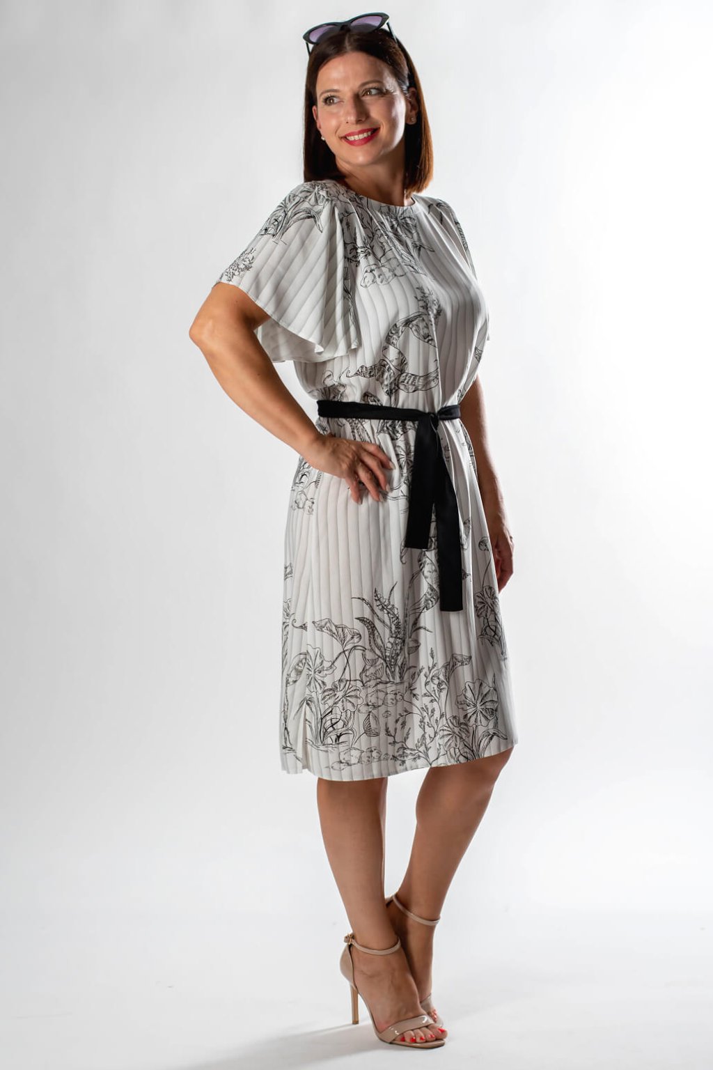 Stylové šaty. Šaty z viskózy jsou ideální volbou pro ženy, které hledají spojení pohodlí, elegance a vzdušnosti. Viskóza, často označovaná také jako umělé hedvábí, propůjčuje šatům jedinečné vlastnosti, díky kterým jsou skvělým doplňkem vašeho šatníku.Šaty jsou v pase uvázány páskem.