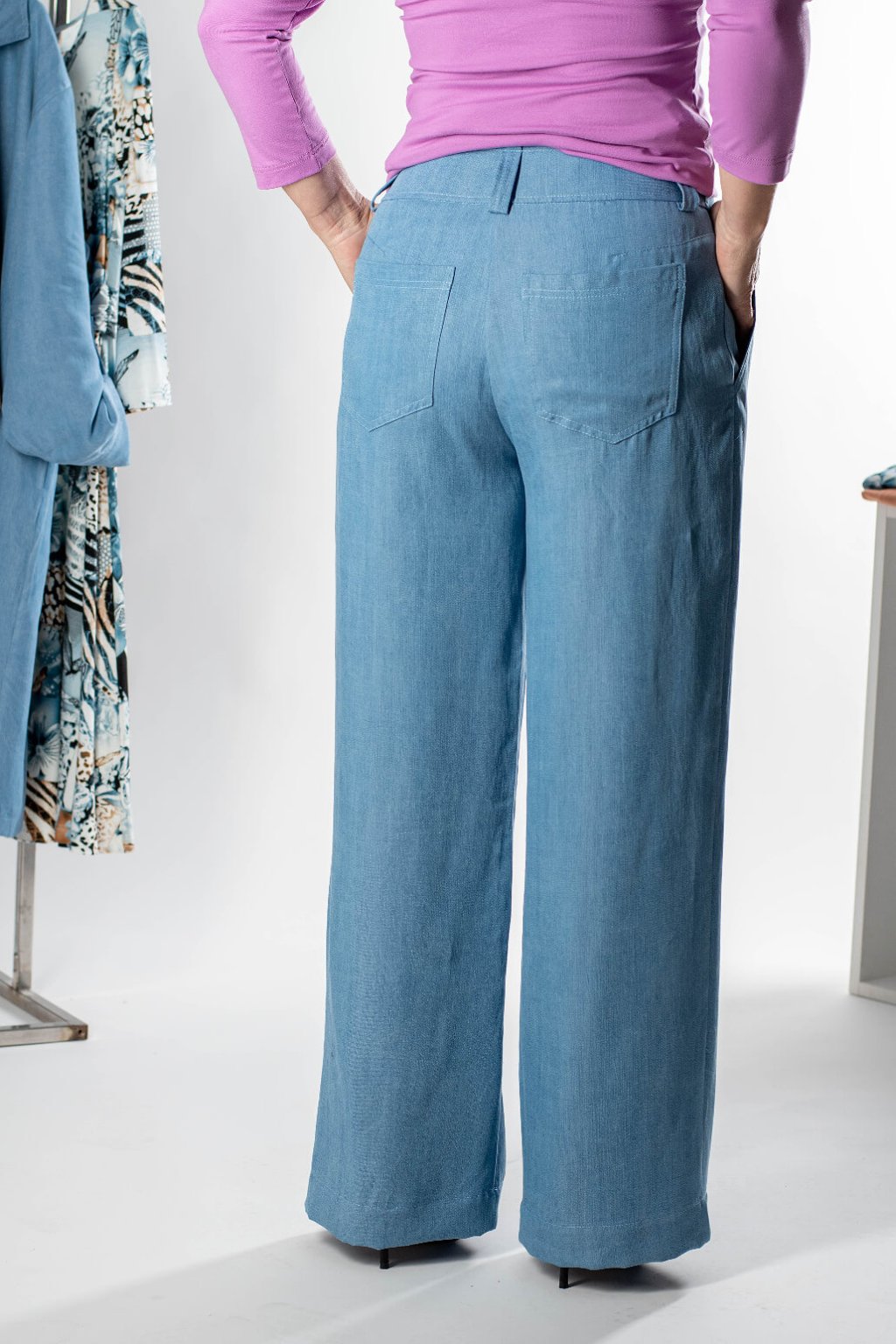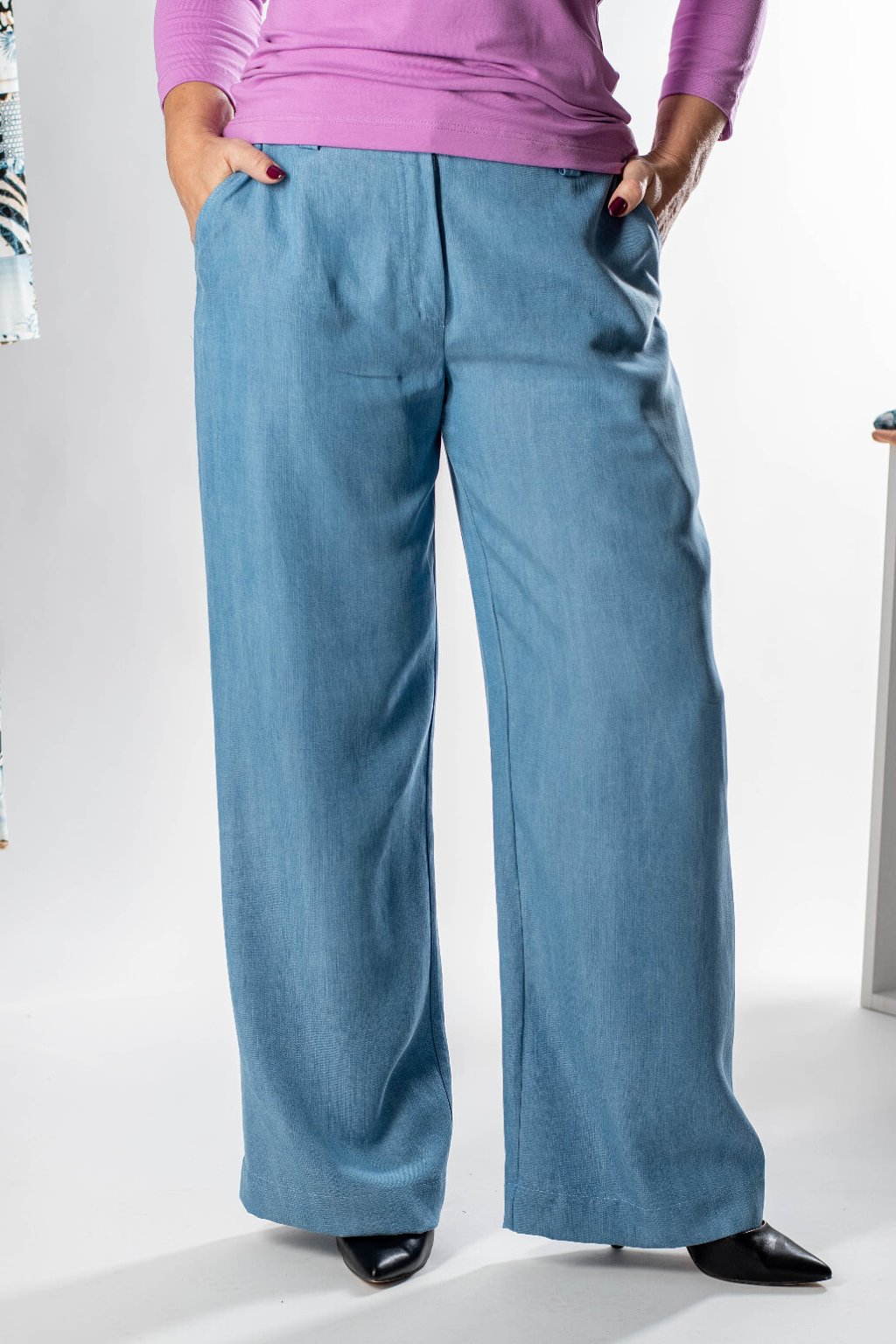 Objevte dokonalou kombinaci stylu a komfortu s našimi širokými kalhotami inspirovanými nadčasovou módou. Vyrobeno z lehké, ale pevné látky s denimovým vzhledem, které zaručí, že se v nich budete cítit skvěle po celý den.